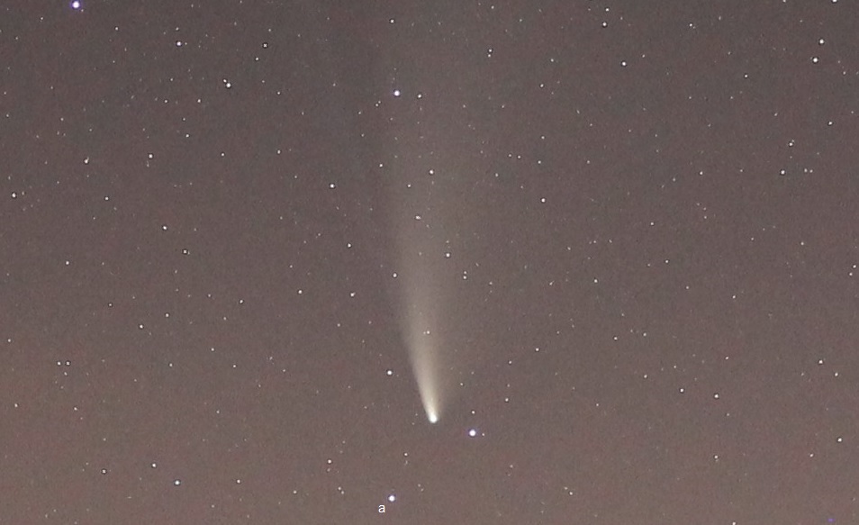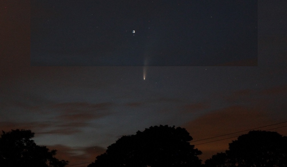 Above – 0248 IST; 3 million miles closer to Earth and tail length approaching 6°. Below – cropped version; with (a) 55 Aur, mag 5; 2.5° separation.