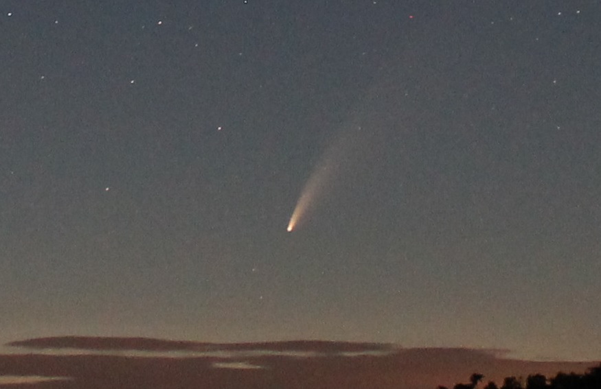 0255 IST; with (a) mag 4.6 21 Lyncis. Stitched image due to pervasive cloud cover. The Comet reached perihelion on July 3rd at 27 million miles; orbital period ~7000 years.