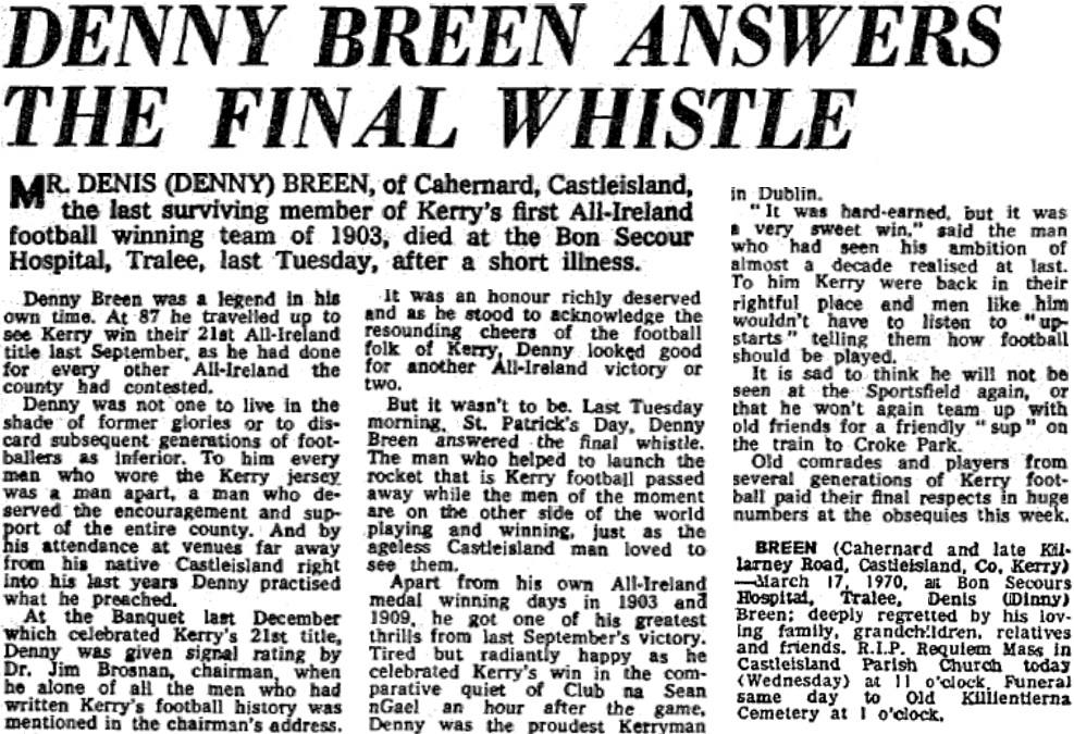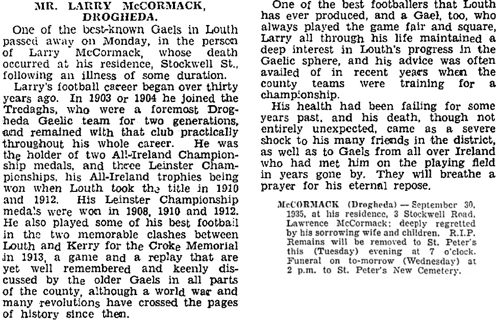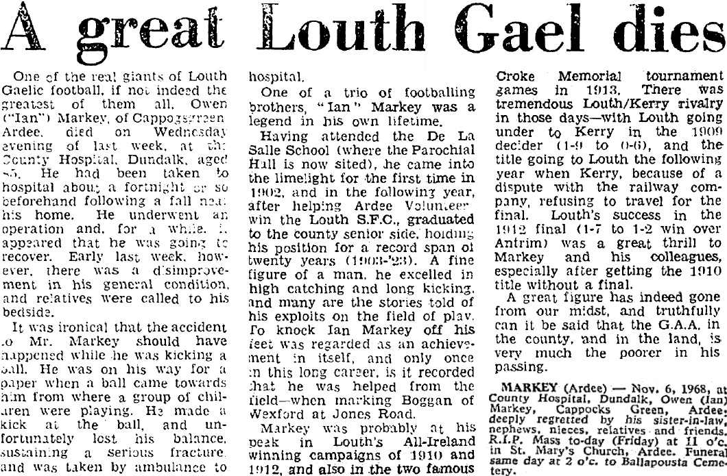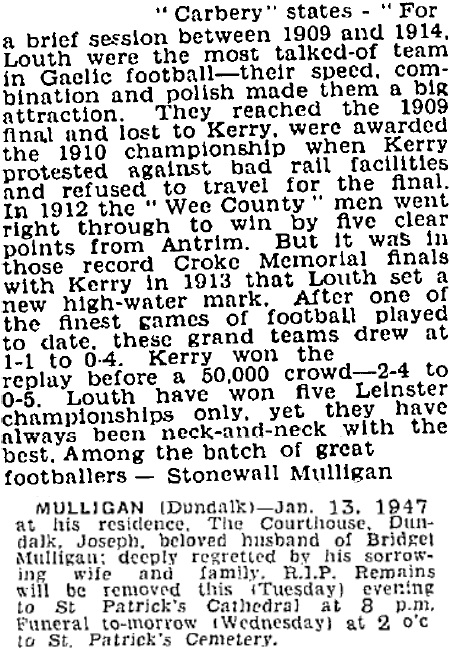 | 1910 | Louth W/O Kerry Scr; 13 Nov |