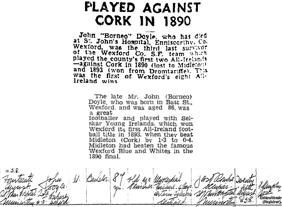 | 1890 | Cork 2-4 Wexford 0-1; 26 Jun 1892 | |||