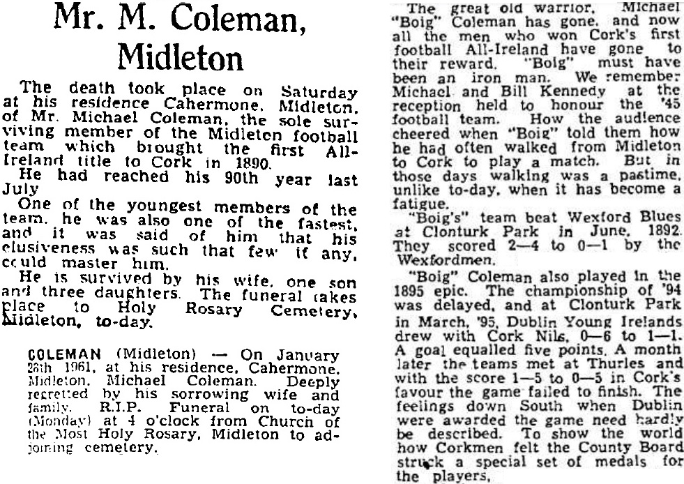 | Michael Coleman | 31 Jul 1870 | 28 Jan 1961 | 90y 181d | |