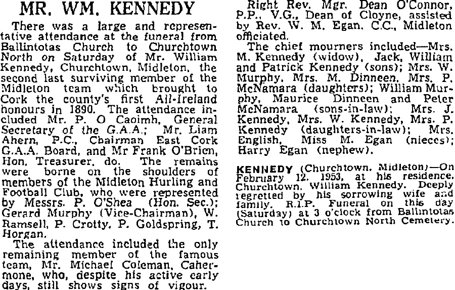 | Malachi O’Brien | 12 Jun 1867 | 2 Aug 1953 | 86 | |