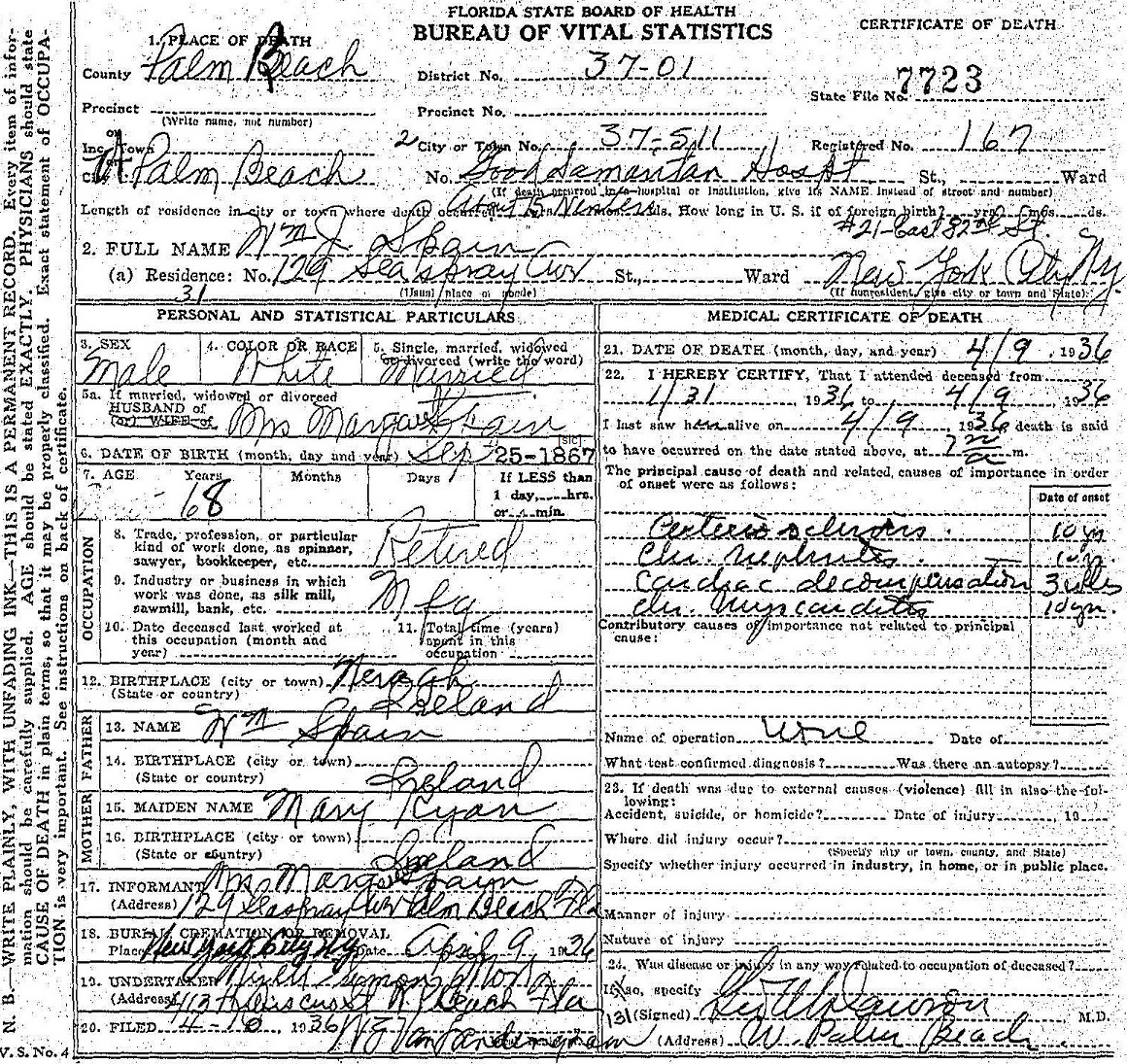 | William J Spain | 3 Sep 1865 | 9 Apr 1936 | 70 | |