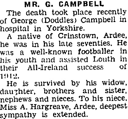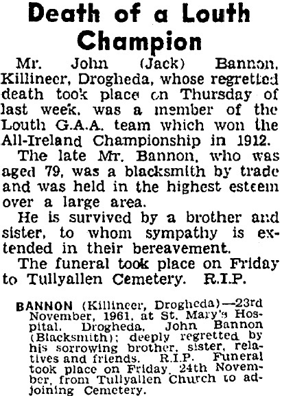 | 1912 | Louth 1-7 Antrim 1-2; 3 Nov |