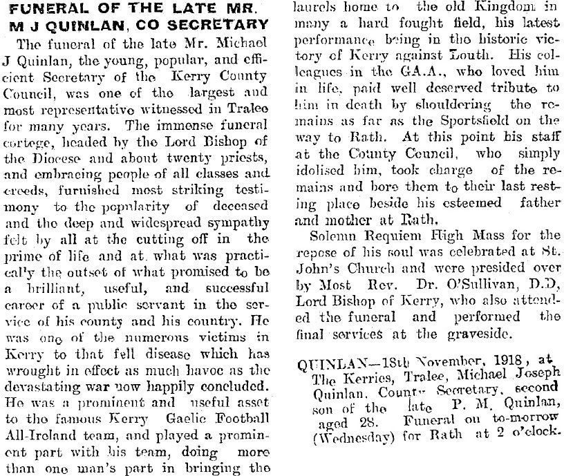 | Michael Quinlan | 10 Mar 1890 | 18 Nov 1918 | 28 | |