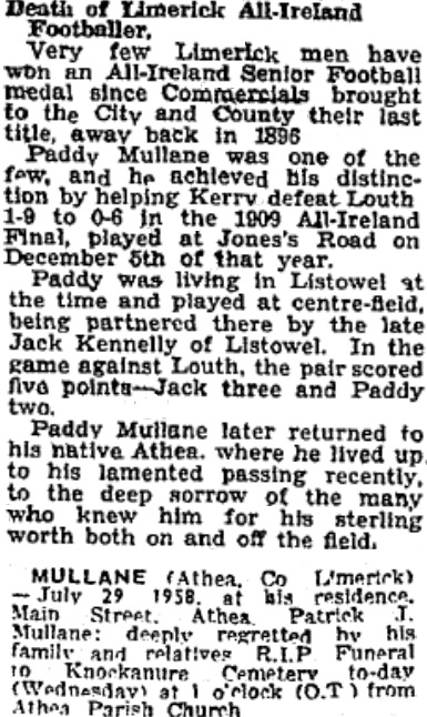 | Paddy Mullane | 29 Jul 1958 | 69 | ||