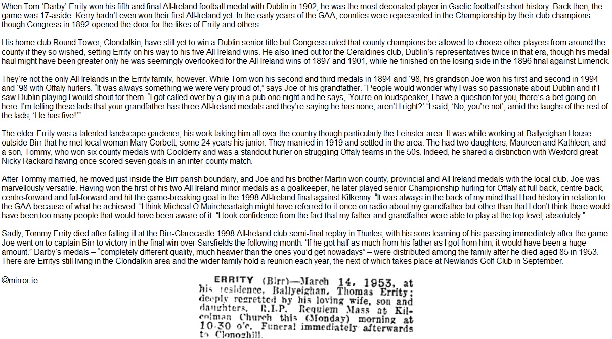FIVE : Thomas ‘Darby’ Errity, Jack Grace – Dublin