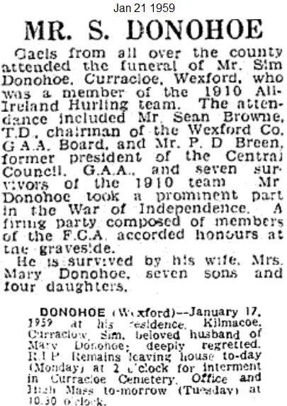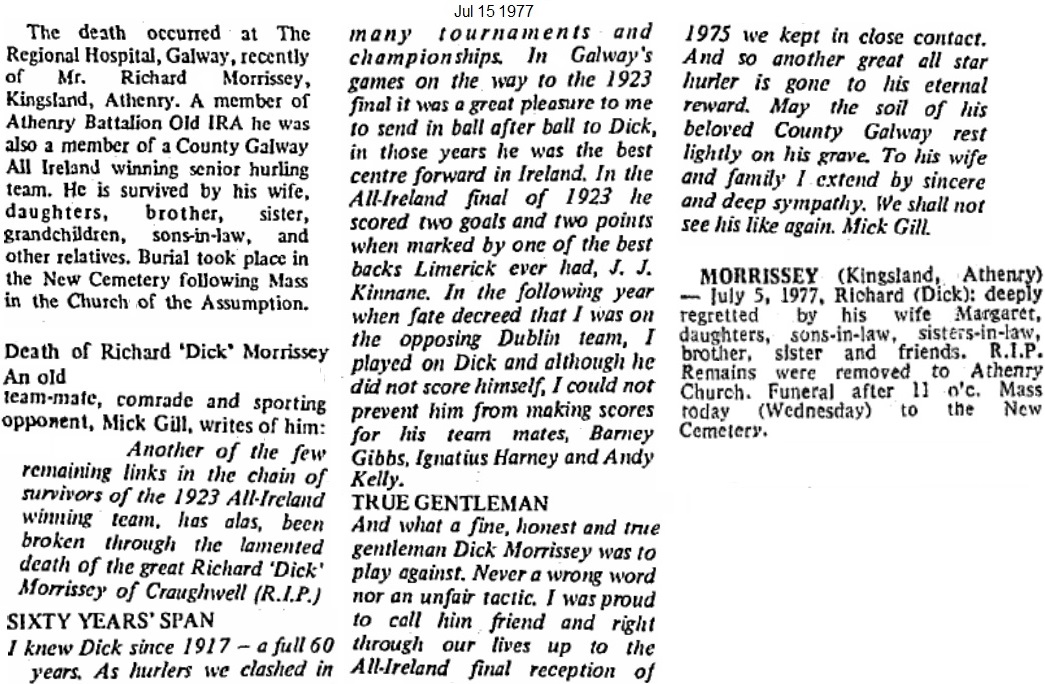 John Reidy, Jim Flood, Pat Buskin, John Finn, Sean Og Hanley, John Hynes, Patrick O’Brien, Michael Downes, 150 – Denis Grimes (c), Patrick Butler, John Condon, Maurice Flynn, Tom Brazill, Jim Cathroll, Patrick Flynn, Pat Mulcahy, Mick Finn
