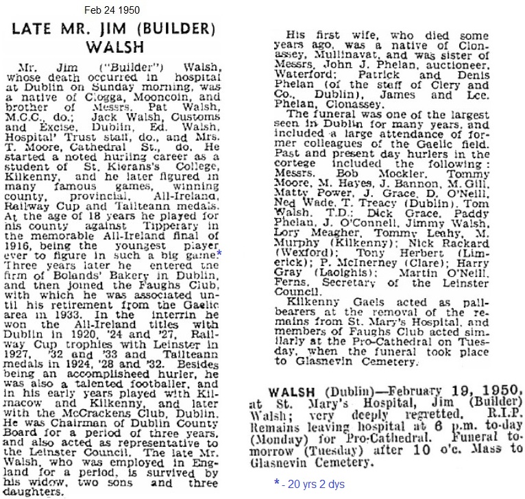 | Denis Walsh | 1895 Tipperary | 19y 34d |