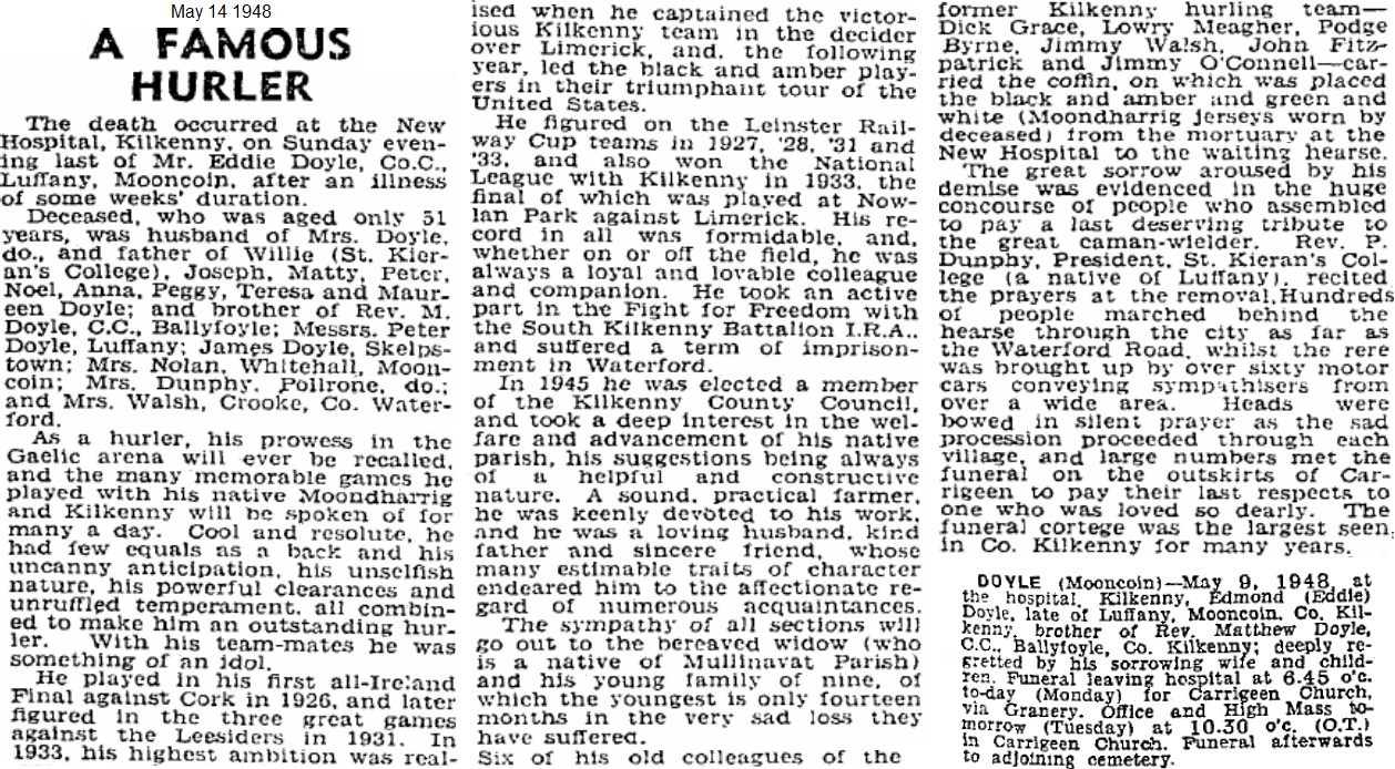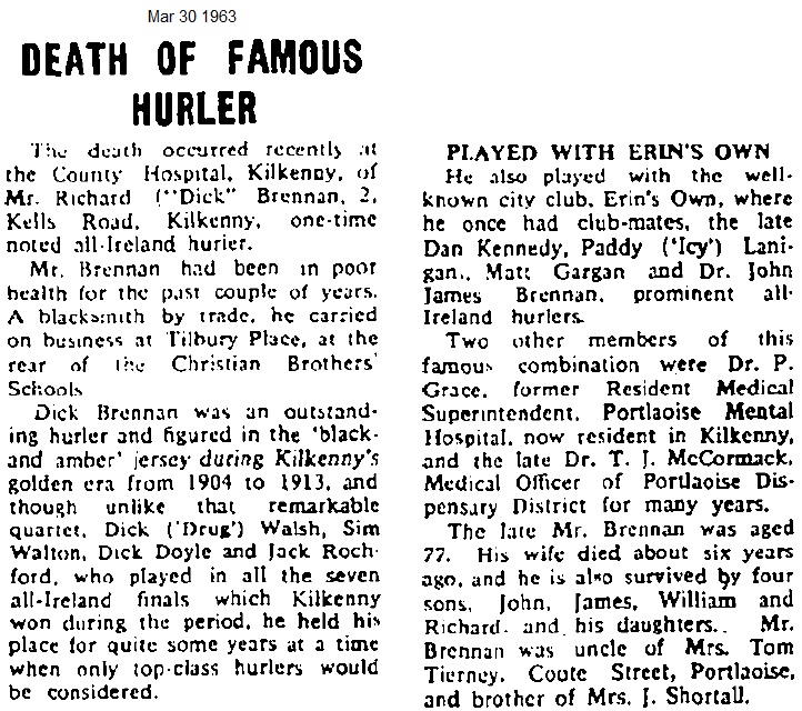 | SIX | Paddy Lanigan, Eddie Doyle, Jimmy Kelly, Dan Kennedy – KILKENNY |