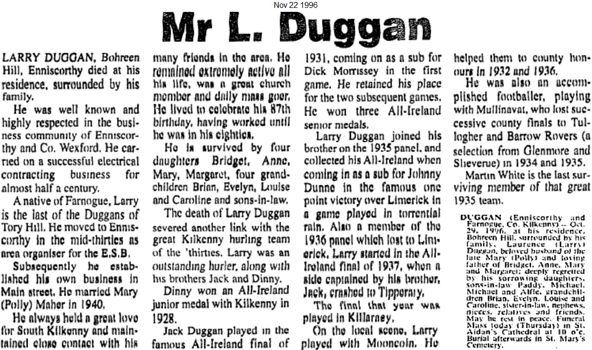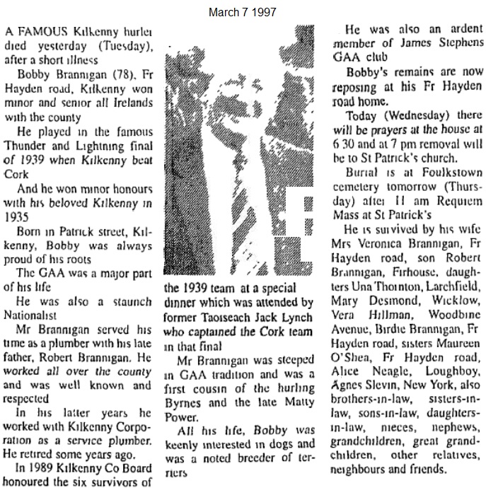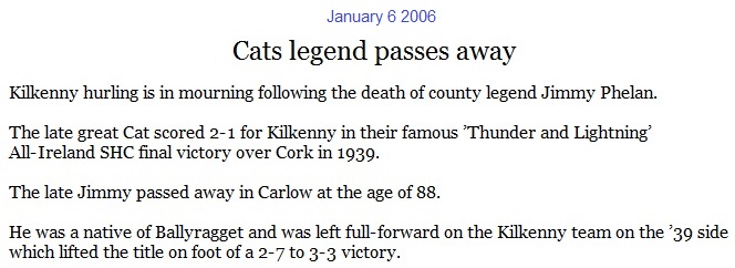 | MARTIN WHITE | KILKENNY 1932, 33, 35 | 1909-2011 | 102y 73d |