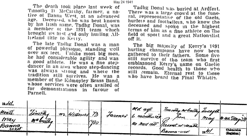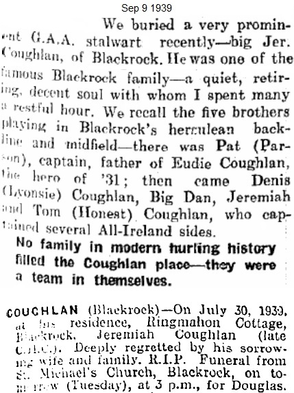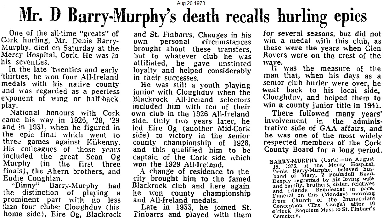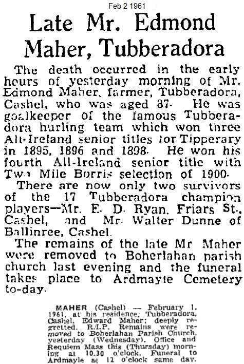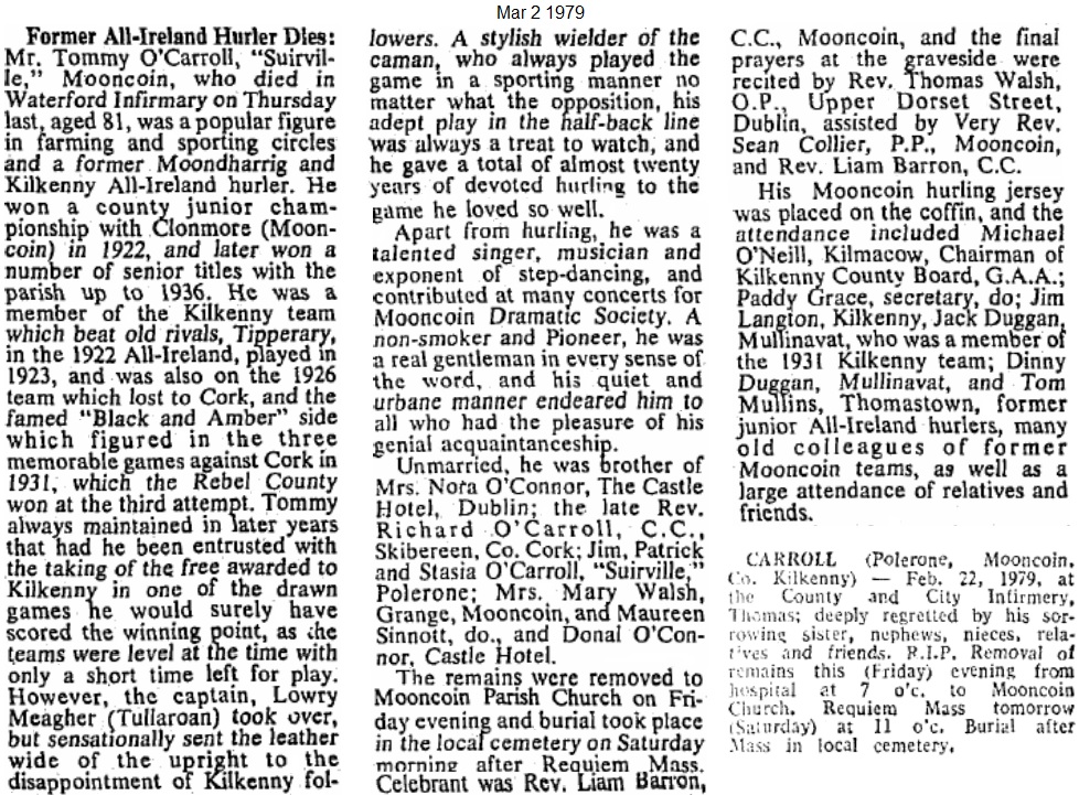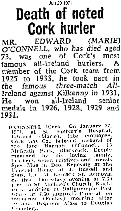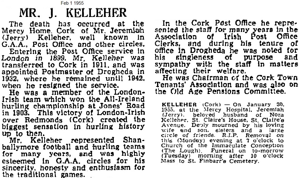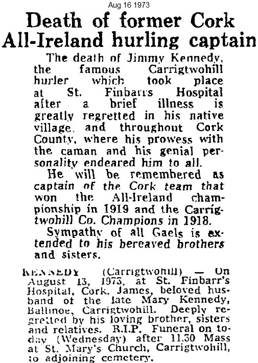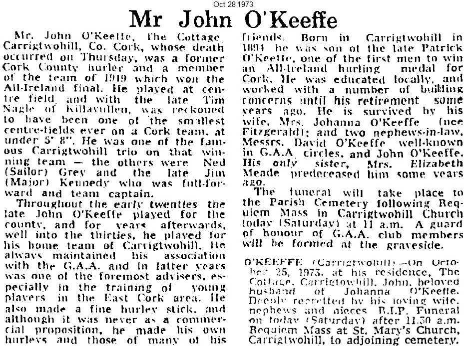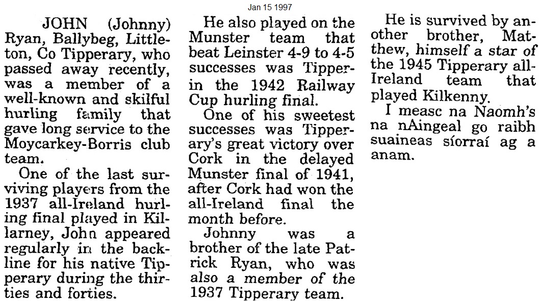 | 20. Mick Carroll | Patrick Riordan | Paddy O’Riordan | Maurice Fitzmaurice |