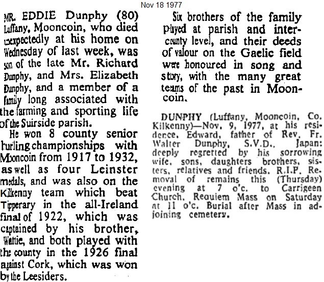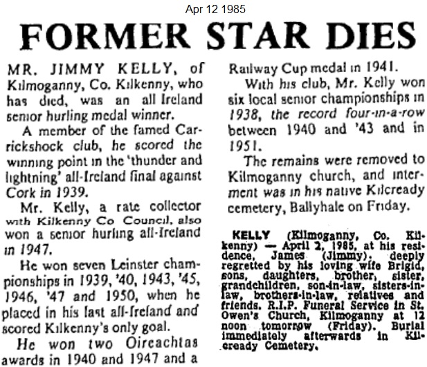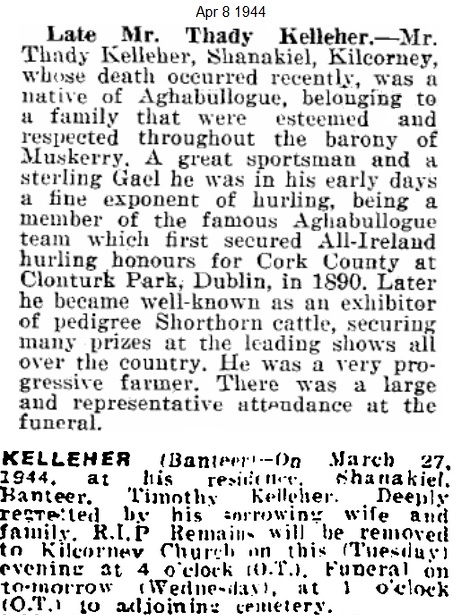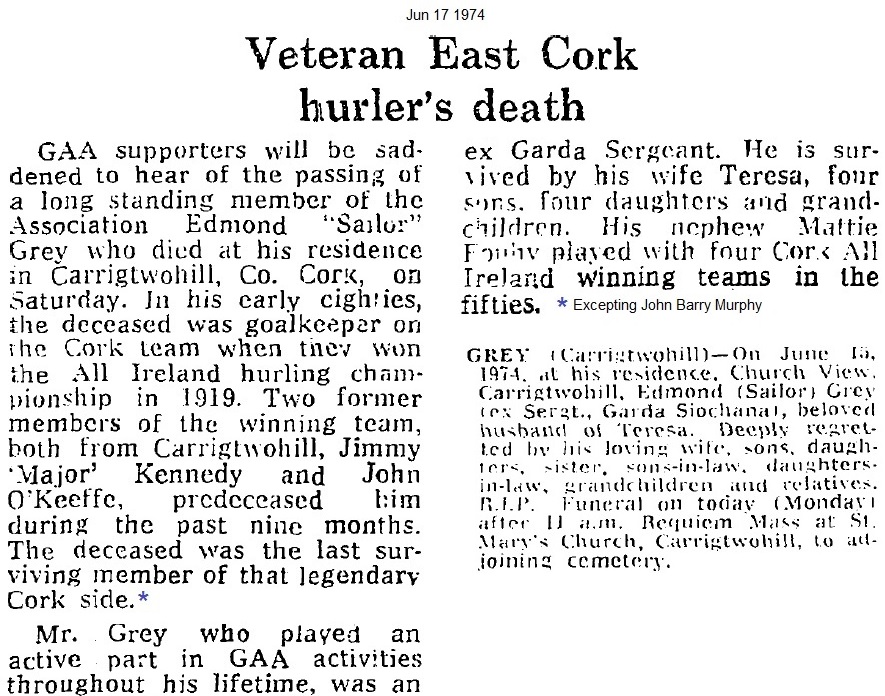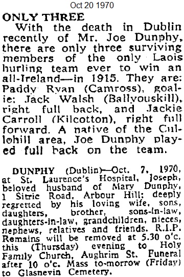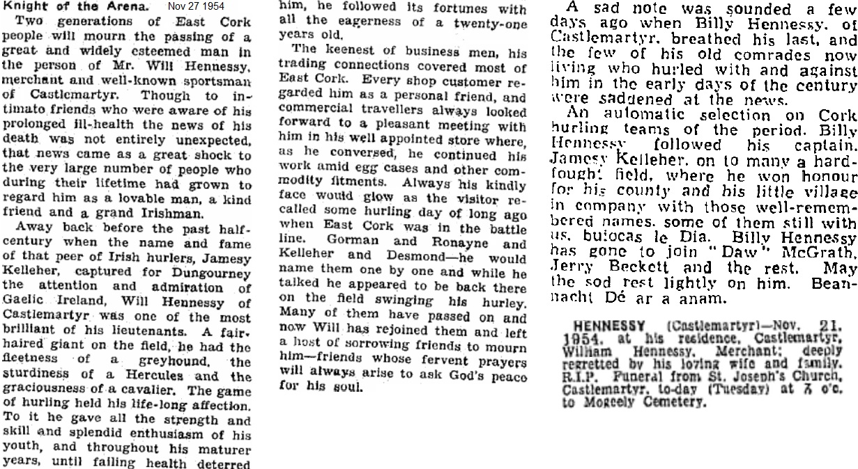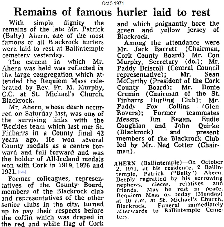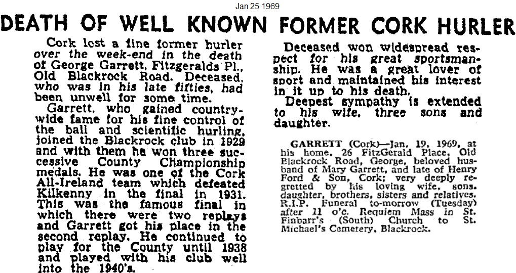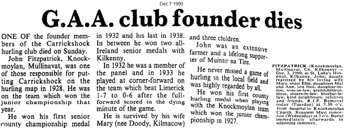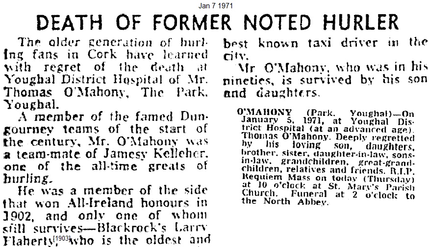 | 20. Mick Carroll | Patrick Riordan | Paddy O’Riordan | Maurice Fitzmaurice |
