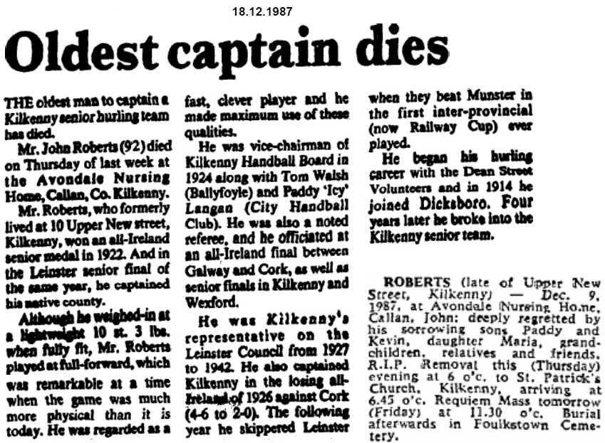 | JOHN T POWER | KILKENNY 1907, 11-13 | 1883-1982 | 98y 293d |