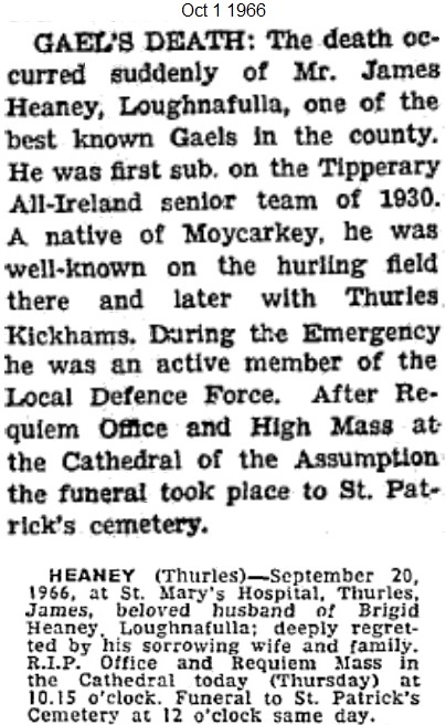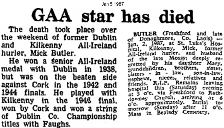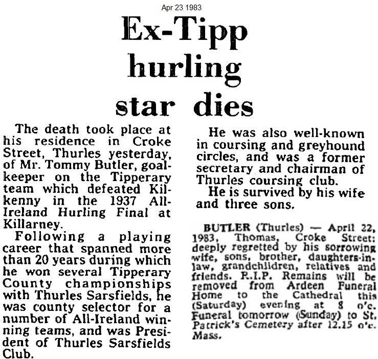 | JIMMY ‘BUTLER’ COFFEY | TIPPERARY 1937 | 1909-2010 | 101y 64d |
