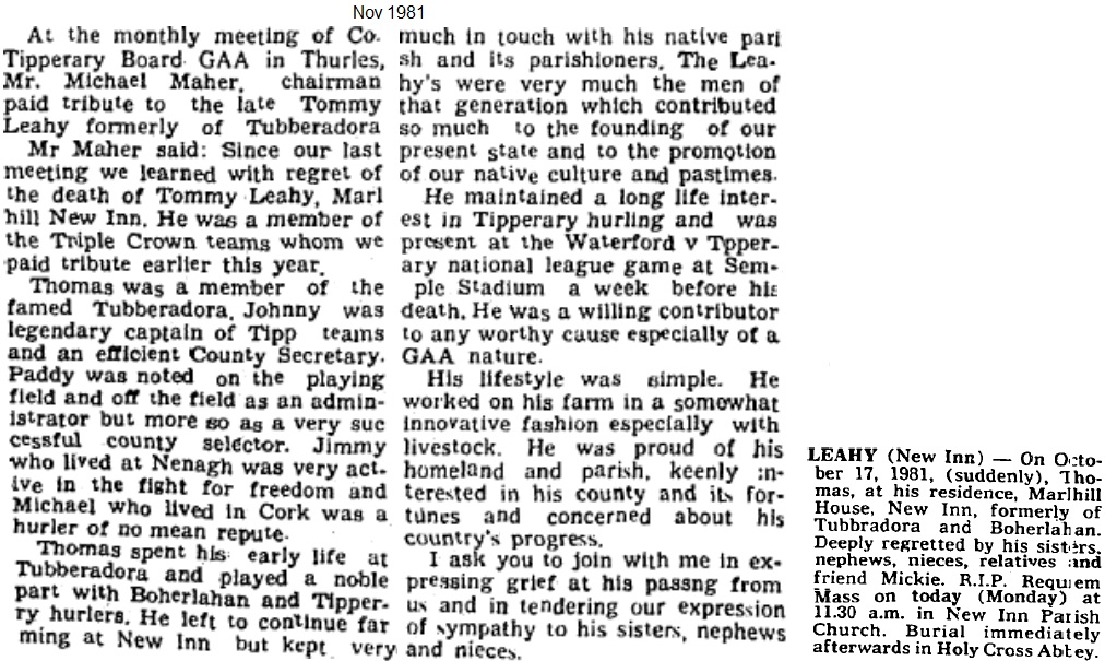 | Tommy Leahy | Jimmy Cooney | Jim Byrne |