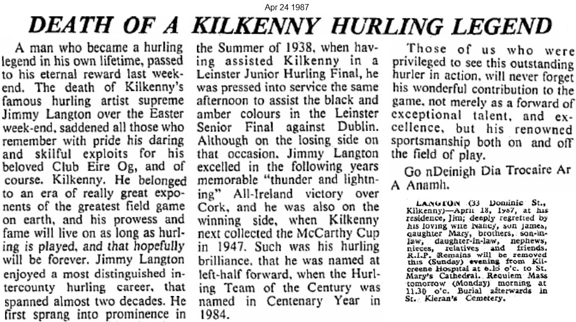 | [JIMMY LYNAM | CORK 1952 | 1925 | 100y +] |