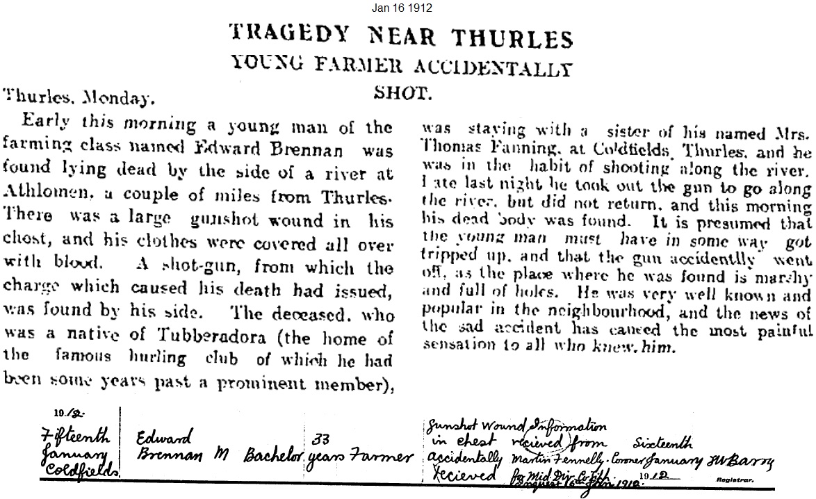 Excerpts © Irish Newspaper Archives, Findmypast.com, Genealogy.ie