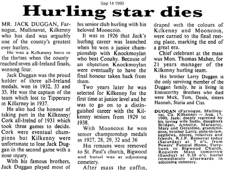 All-Ireland Senior Hurling Medallists : 1887 – 1940