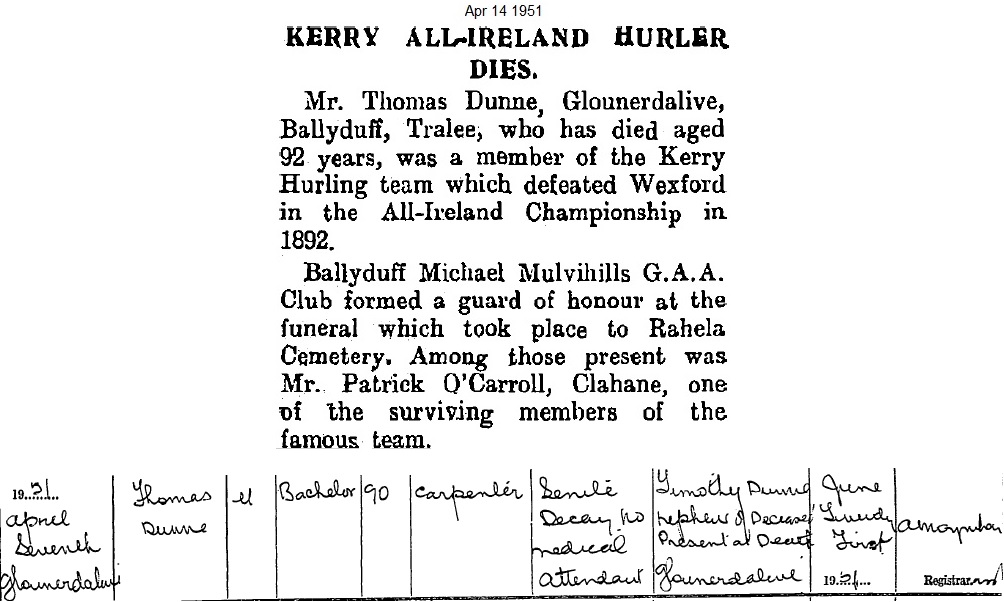 | Jack Dunne | Sil Riordan | 60. Jer O’Sullivan | John O’Sullivan |