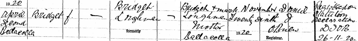 | 34. Eileen | HYNES | (Jones) | Dec 15 1916 | Offaly | |||