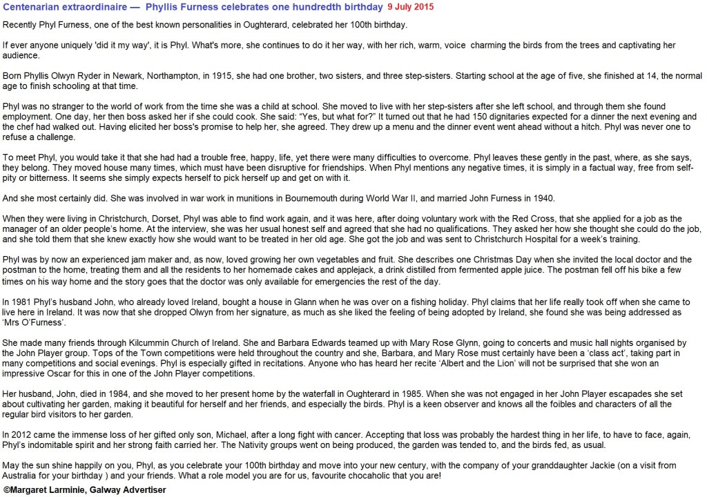 Phyllis Furness ———- Share this: Click to share on X (Opens in new window) X Click to share on Facebook (Opens in new window) Facebook Like Loading...